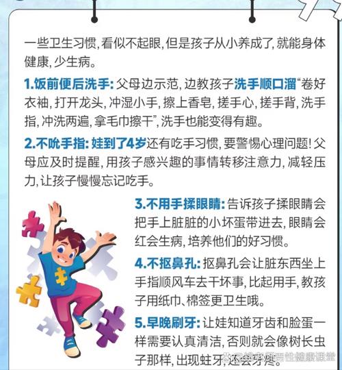 幼儿园安全卫生小常识 幼儿园安全卫生小常识:我是健康小卫士!亲爱的小朋友们、爸爸妈妈们:欢迎来到幼儿园这个大家庭!为了让每个宝贝都能在这里安全、健康、快乐地学习和玩耍,我们一起来学习一些重要的安全卫生小知识吧!第一部分:卫生小习惯,健康好伙伴干净卫生是健康的第一道防线,养成好习惯,病菌不来找!勤洗手,做个“干净小超人”我...