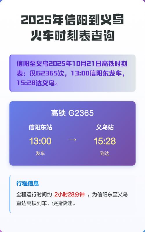 信阳到义乌飞机时刻表最新查询? 信阳没有民用机场,从信阳出发前往义乌,您需要先前往附近的机场,然后乘坐飞机,从信阳出发,乘坐飞机到义乌(主要推荐)最便捷的方案是先从信阳乘坐高铁或汽车到达郑州新郑国际机场,然后从郑州飞往义乌机场,路线概览:信阳 → (高铁/汽车) → 郑州新郑国际机场 → (飞机) → 义乌机场第一步:信阳 → 郑...