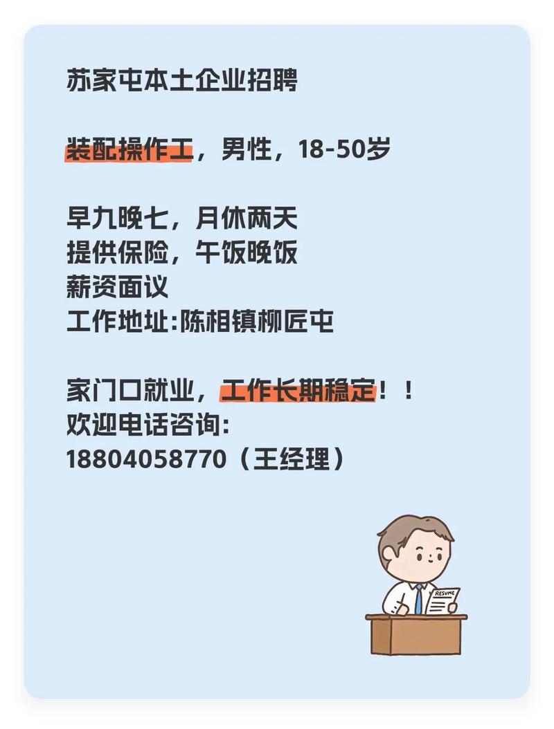 苏家屯招聘女工最新招聘 如何快速获取最新招聘信息(推荐方法)最有效的方法是使用线上招聘平台,并设置职位提醒,主流招聘APP/网站 (最推荐)这些平台信息最全、更新最快,是求职的首选,BOSS直聘: 强烈推荐,特点是可以直接和老板或HR聊天,沟通效率高,回复速度快,非常适合找普工、操作工这类岗位,搜索技巧: 在APP中定位到...