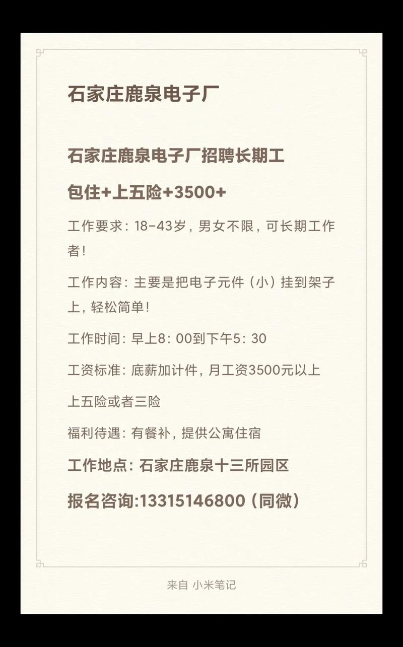 石家庄鹿泉最新招聘信息有哪些岗位? 如何获取最新、最全的招聘信息?强烈推荐以下几种方式,它们的信息更新最快、最准确:线上招聘平台 (最常用、最便捷)这是目前求职的主流渠道,信息量大,筛选方便,BOSS直聘: 推荐首选,沟通直接,效率高,很多企业HR和老板都在上面,可以即时沟通,在App或小程序中,将地点设置为“石家庄-鹿泉区”,即可看...